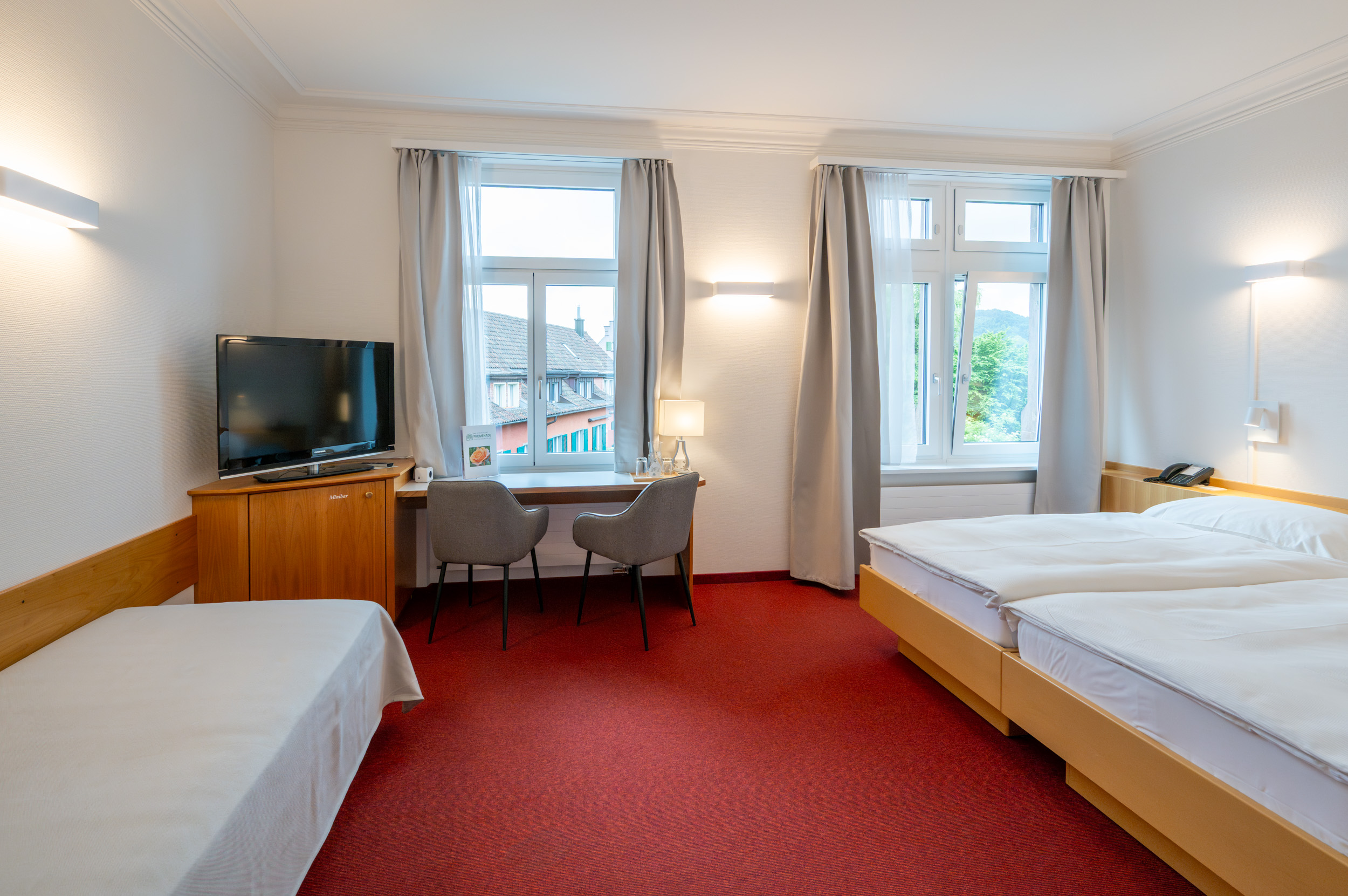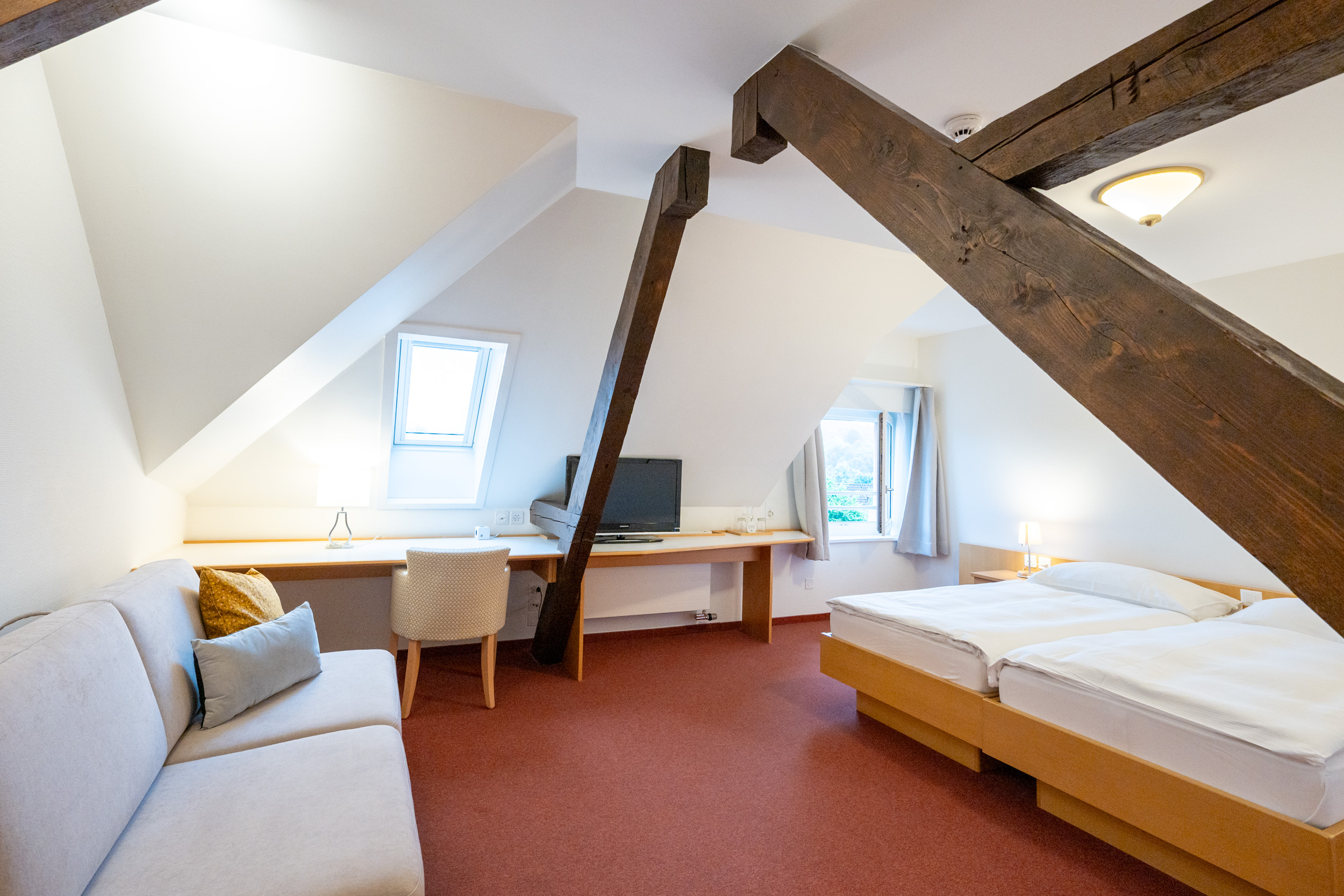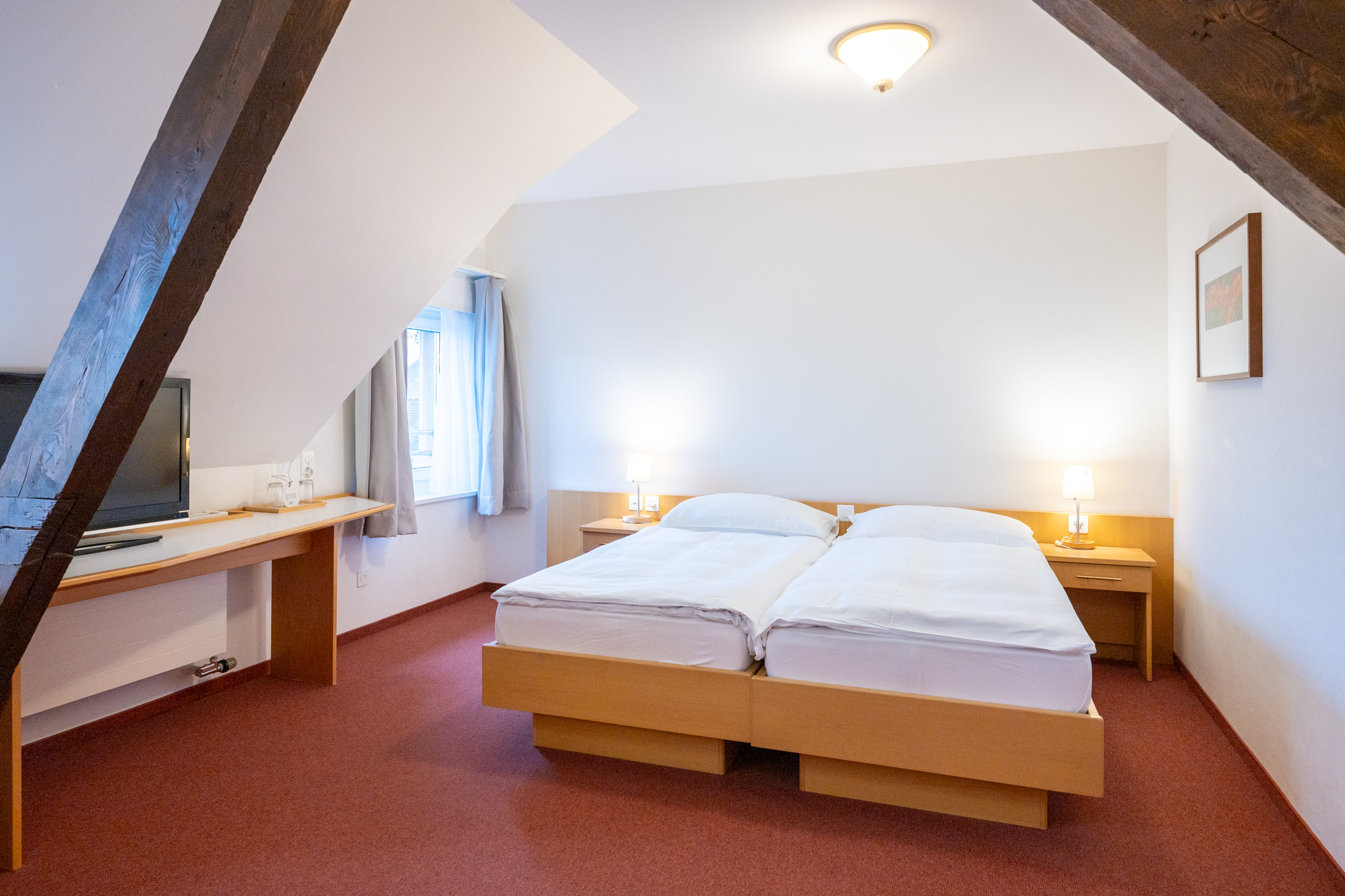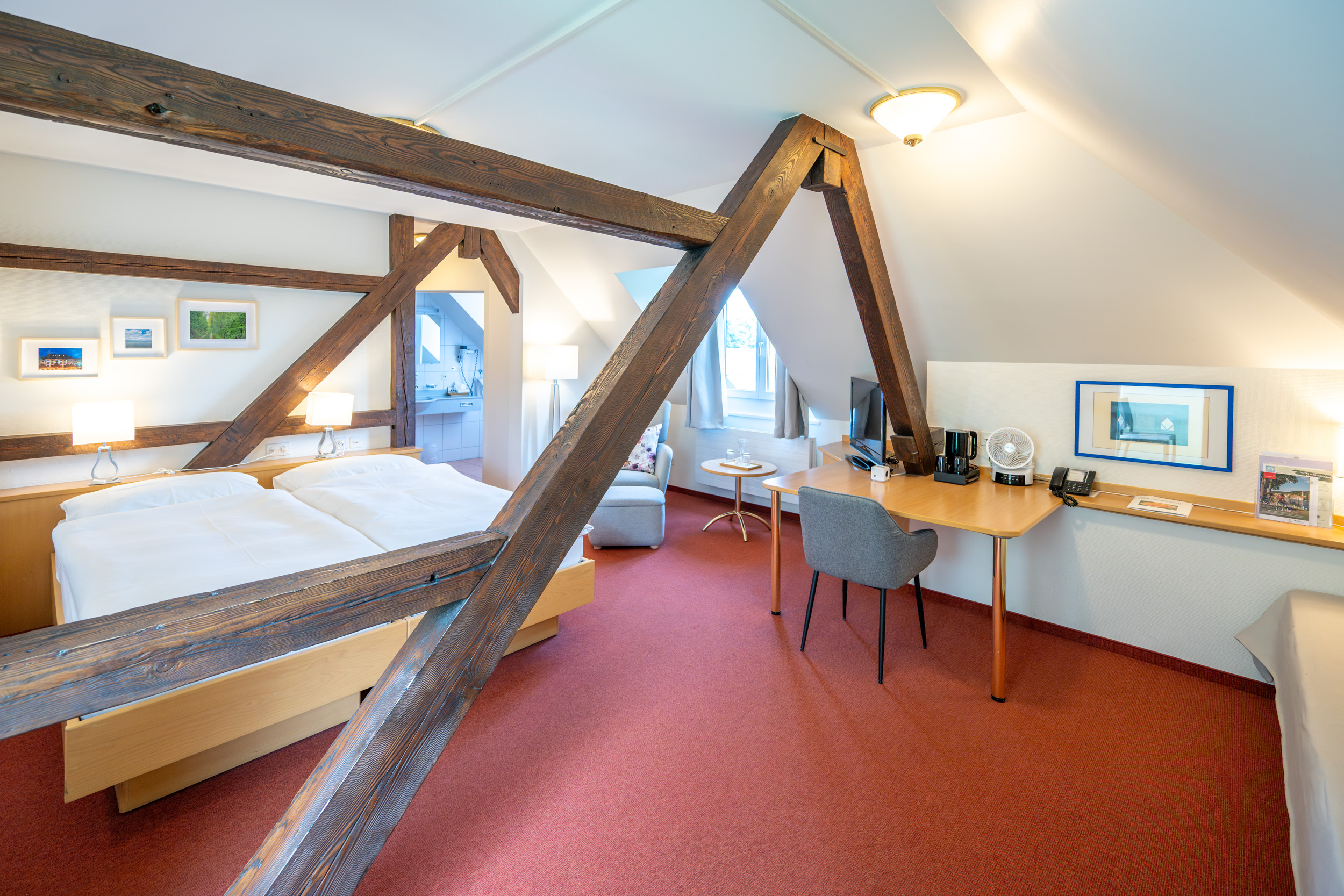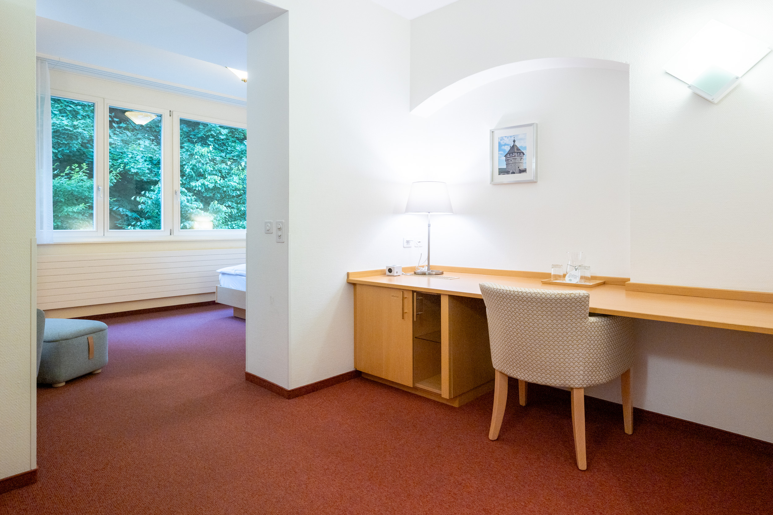 Alle Zimmer mit Schreibtisch. Der Zugang zum Hotel und Restaurant ist rollstuhlgängig. Barrierefreie Zimmer verfügbar. Abschliessbare Einzelgarage gegen Aufpreis verfügbar.