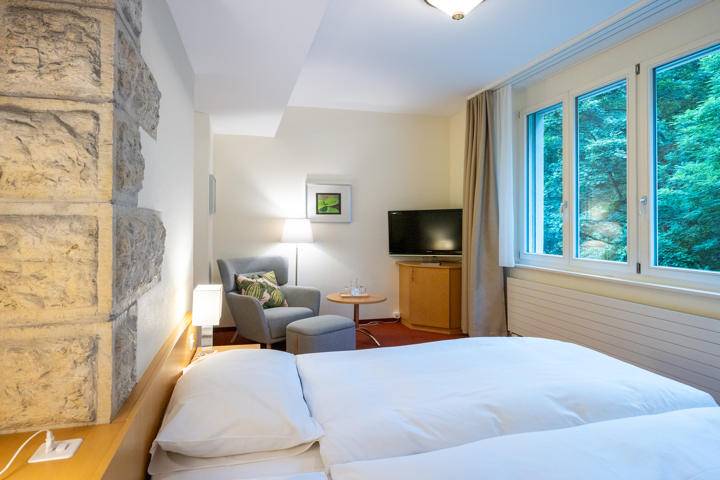 Grosses regionales Frühstücksbuffet, Zugang zum Hotelpark, Aussenparkplatz, schnelles Internet.